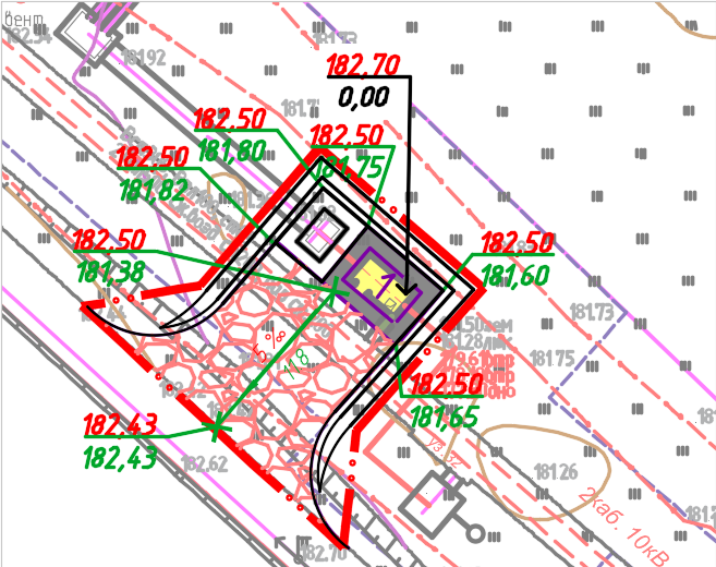 Проектируется узел учета. В 12 метрах от проектируемого участка проходит существующая дорога. Участок посадки УУ как водится ниже дороги. Был запроектирован подъезд с минимальным уклоном.
