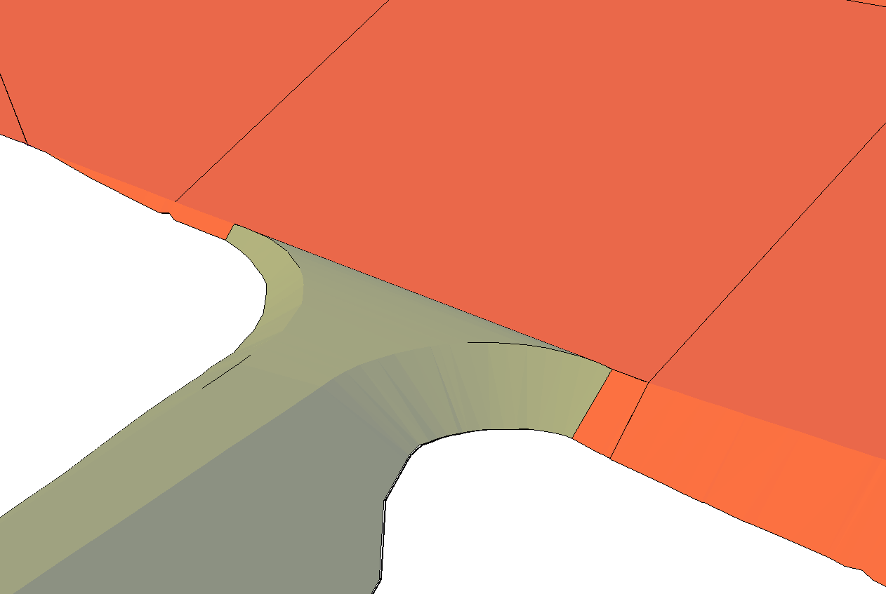 Не совсем понятно что имеется ввиду под "нижним" расчетом? Откос который ниже по отметке? И как технически реализовать объединение поверхностей? Останется ли возможность адаптивного изменения объекта профилирования?