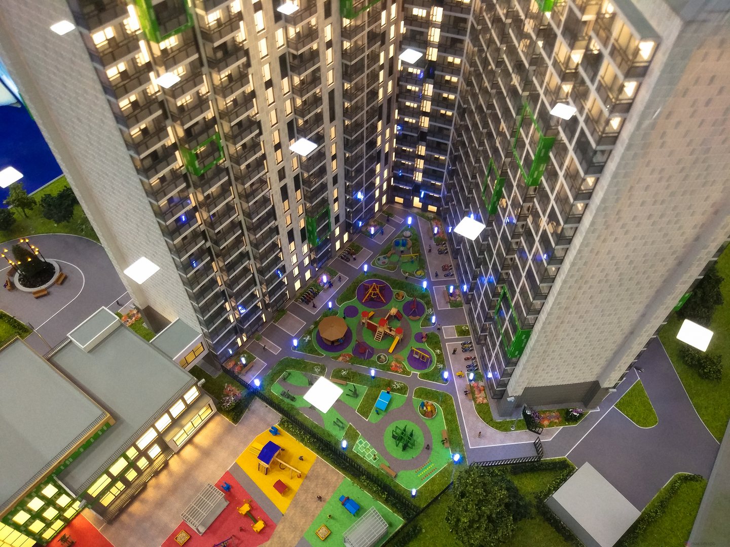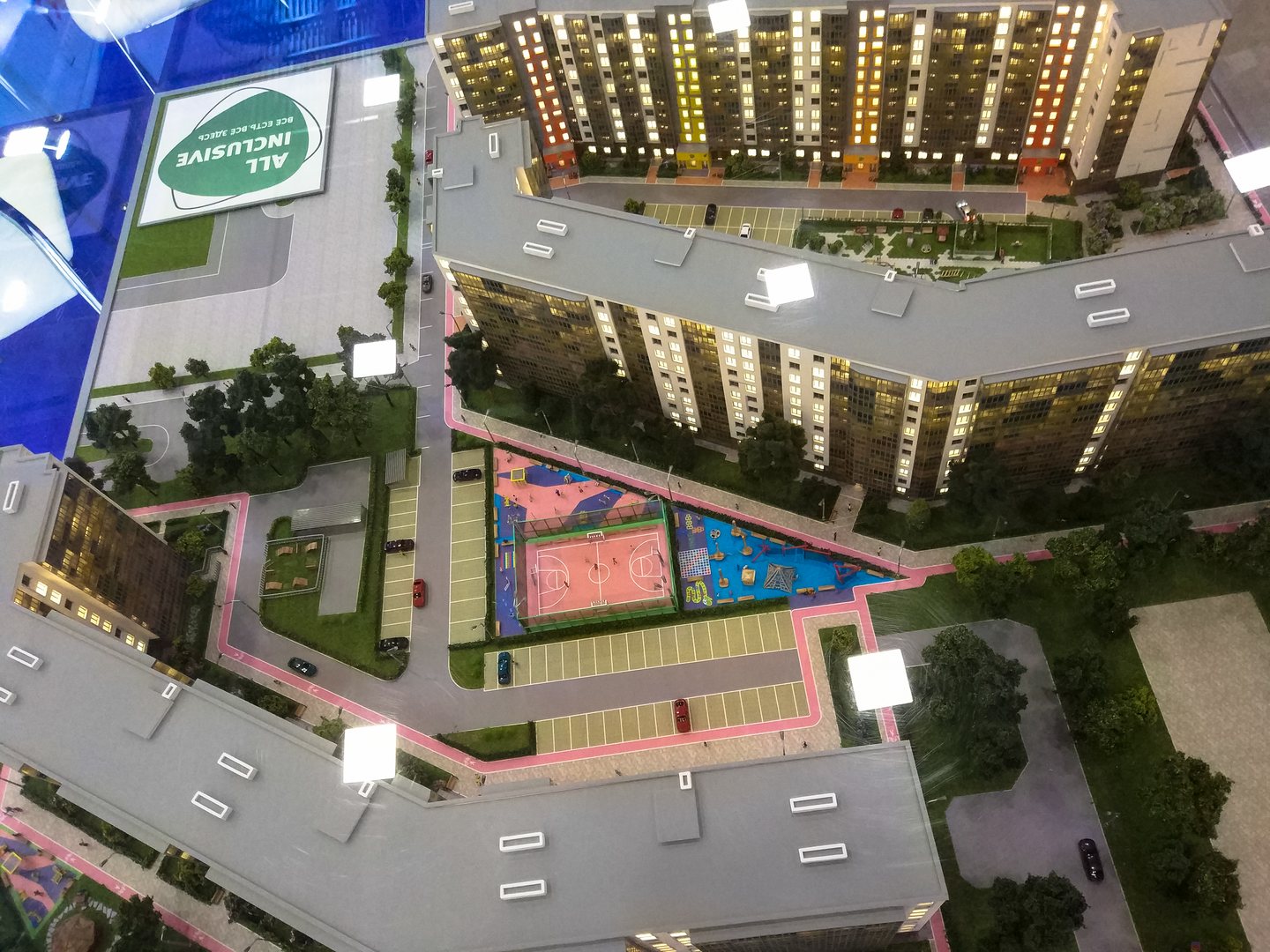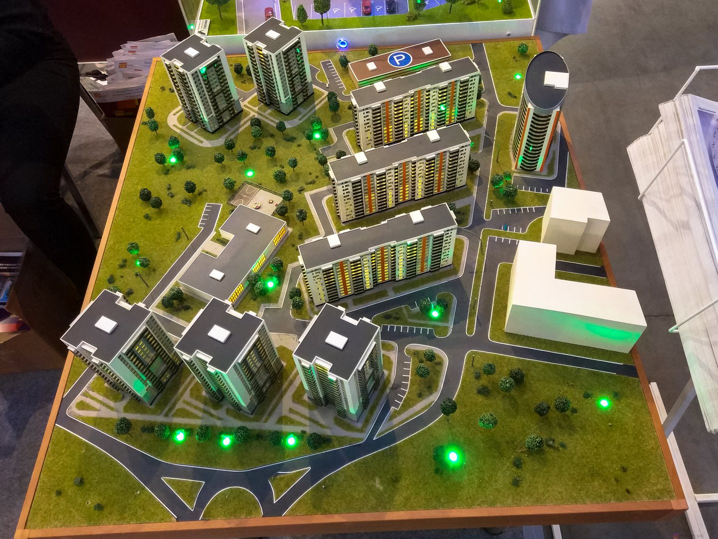 В этом году было значительно меньше крупных застройщиков, из команды 10 застройщиков представлены только 3-4. По предложениям застройщиков все переключились с продажи 4 стен, на продажу прекрасной благоустроенной территории. Попытка не плохая, но продажа территории ограничивается только кадастровой границей. Ниже приведены фотографии дворов в макетах.